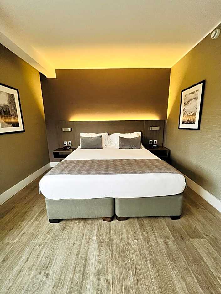 Experience ultimate comfort in our Standard King Room, a spacious 301 sqft double room that accommodates 2 adults and 1 child. Enjoy the convenience of a private bathroom, a comfortable queen size bed, and modern amenities such as a coffee machine, flat-screen TV, and air conditioning for a truly relaxing stay.